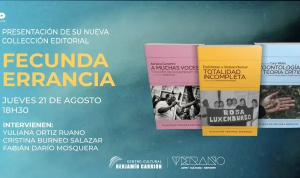 El Centro Cultural Benjamín Carrión La Mariscal acogerá la presentación de la colección Fecunda Errancia este jueves 21 de agosto a las 18h30. Este proyecto editorial, impulsado por la Casa Carrión, tiene como objetivo traducir y publicar obras fundamentales de la teoría crítica contemporánea que aún no estaban disponibles en español. La colección inicia con…